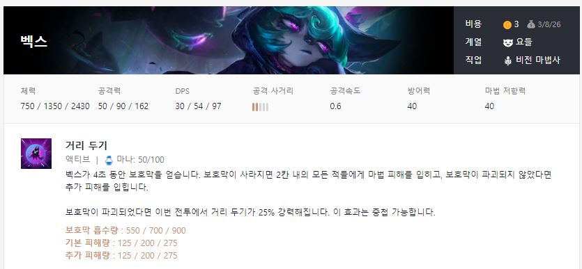 3성 베이가의 위력은 5코스트 3성 챔피언보다 더 강할정도로 막강합니다.